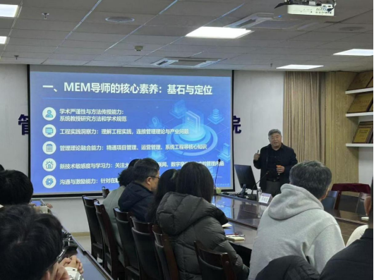 本次活动,张顺堂教授围绕MEM导师的核心素养、指导能力提升路径、选题热点与过程质量控制以及差异化指导等几个方面进行讲解,为各位老师搭建了工程管理案例竞赛经验分享与交流的平台。随后张顺堂教授介绍了大赛背景与参赛要求,并就大赛案例进行分享,有效提升了研究生在工程管理领域的创新思维。