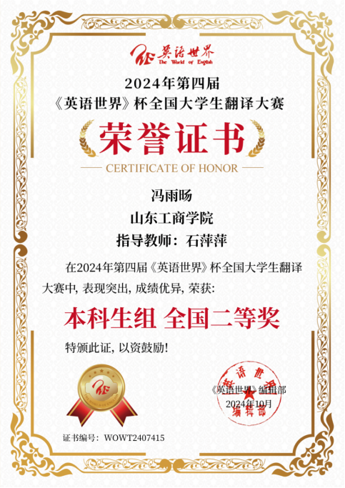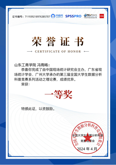 在校期间,冯雨旸屡获佳绩:斩获第三届全国大学生数据分析大赛国家级一等奖、第四届全国大学生翻译大赛国家级二等奖,以及第十五届电子商务“三创赛”省级二等奖、第十九届“挑战杯”省级三等奖……身兼学校大学生科创中心主席,他在组织协调、沟通表达与领导力方面积累的软实力,也成为打动HR的关键亮点。